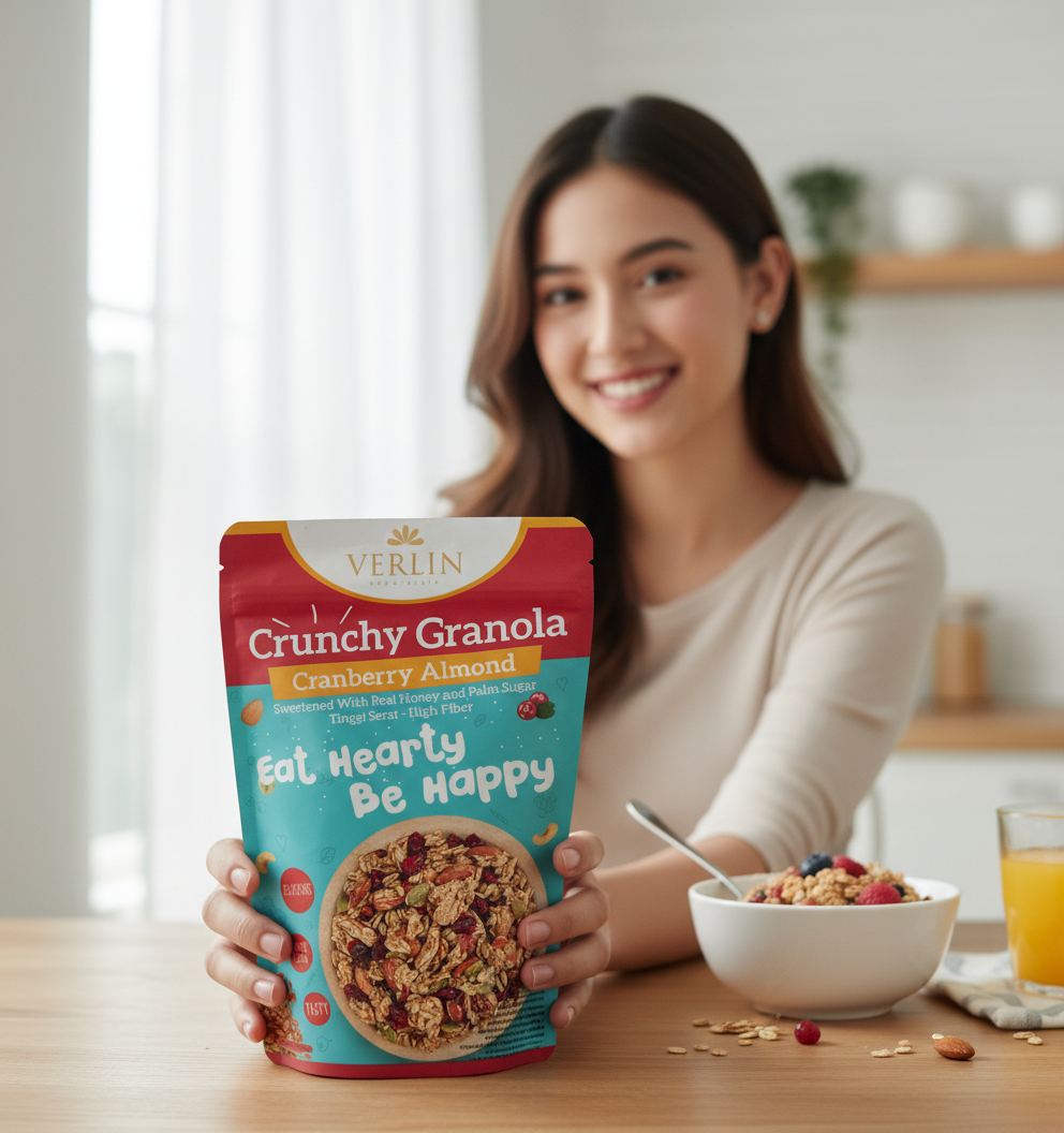 Crunchy Granola hadir sebagai snack diet sehat yang mudah dinikmati di sela aktivitas. Tekstur renyah dari granola memberikan sensasi camilan yang memuaskan, sementara bahan alami membantu menghadirkan pilihan snack yang lebih nyaman dikonsumsi. Granola sehat ini cocok untuk camilan kerja, belajar, olahraga, maupun perjalanan.
