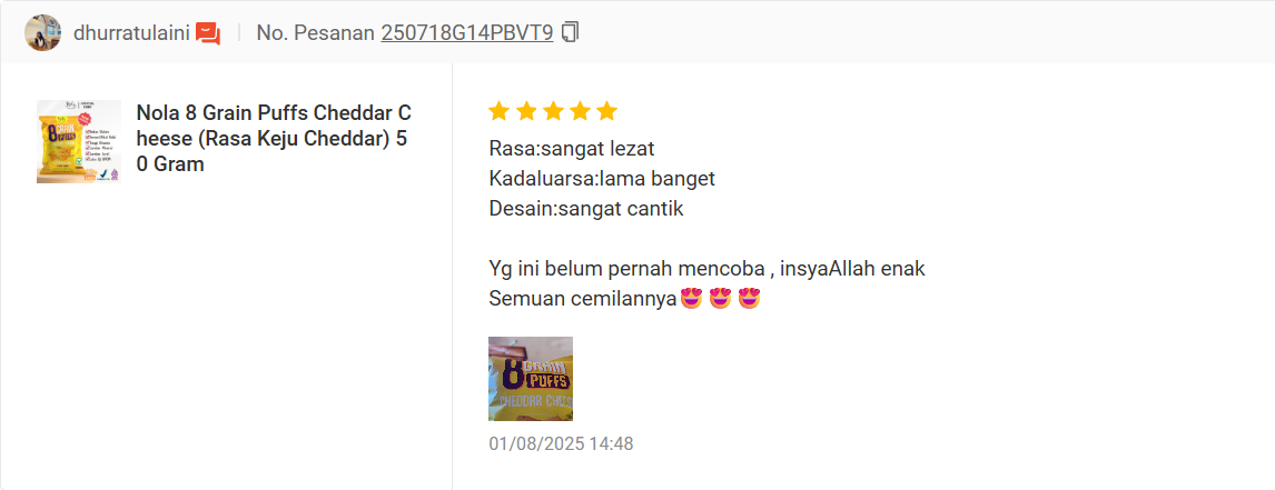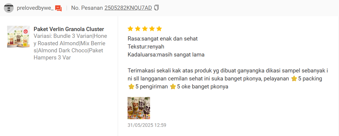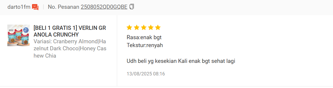See what real customers are saying about Verlin & Nola Healthy Snack on leading marketplaces. From product quality to fast delivery, their honest reviews reflect the satisfaction and trust they experience with every order. These testimonials show why Verlin & Nola has become a favorite healthy snack choice for many.